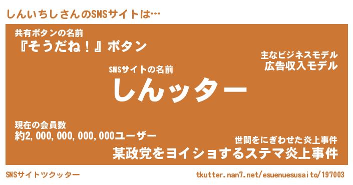 | 肩書あだ名 | 『しんいちし社長』『しんいちし国家主席』 |
