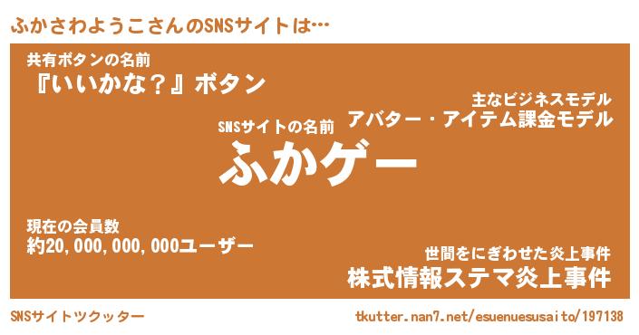 | 胡散臭い通販商品みたいなあだ名 | 『必ず成功する霊験あらたかなお札…その名も「ふかさわようこ」』 |