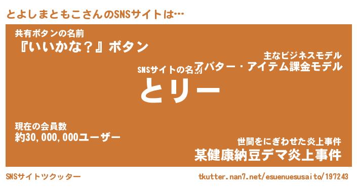 | 肩書あだ名 | 『とよしまともこCEO』 |