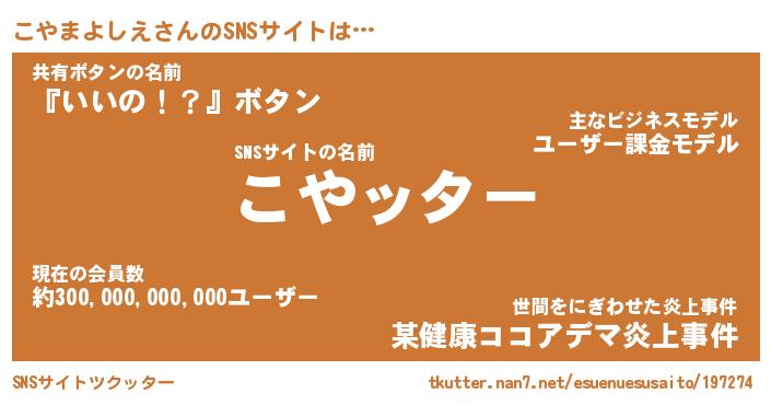 | 欧米人風あだ名 | 『マイケルこやまよしえ』 |