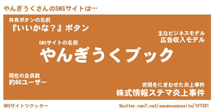 | 男性向けラノベタイトル風あだ名 | 『ヤンギウクアートオンライン』 |