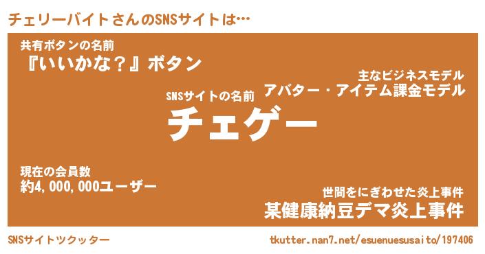 | ヘコむあだ名 | 『チェにー』『なまこ酢』『チェ太郎』 |