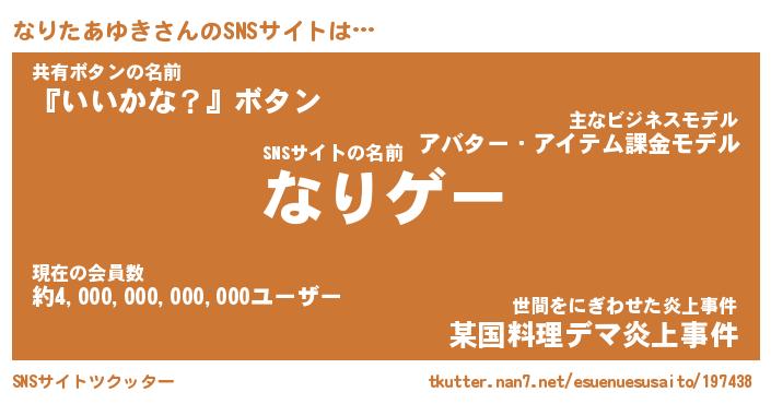 | 恥ずかしいあだ名 | 『プリティーなりたあゆき』『なりっちょ』 |