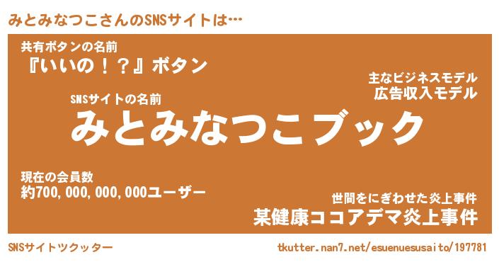 | 胡散臭い通販商品みたいなあだ名 | 『億万長者になれるブレスレット…その名も「みとみなつこ」』 |