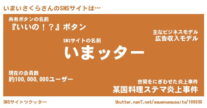 | 胡散臭い通販商品みたいなあだ名 | 『億万長者になれる水晶球…その名も「いまいさくら」』 |