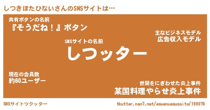 | ポケモン風あだ名 | 『シツチュウ』『シツキダネ』 |