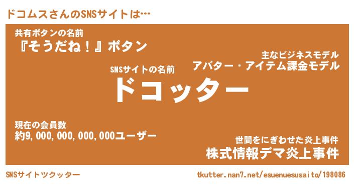 | 肩書あだ名 | 『ドコムス店長』『ドコムス国家主席』 |