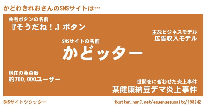 ヘコむあだ名 | 『かどにゅー』『レバニラ』 |