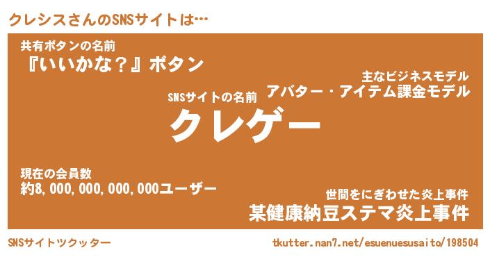 | 意味不明あだ名 | 『ペロリンクレシス』『永久保存クレシス』 |