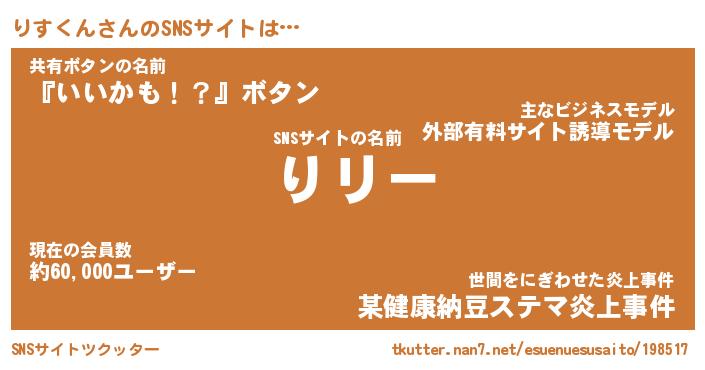 | ヘコむあだ名 | 『りすにゅー』『酢こんぶ』『りすお』 |