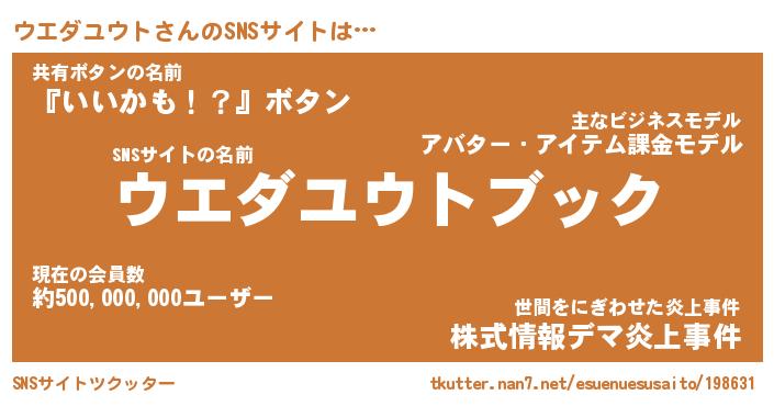 | 肩書あだ名 | 『ウエダユウト社長』『ウエダユウト班長』 |