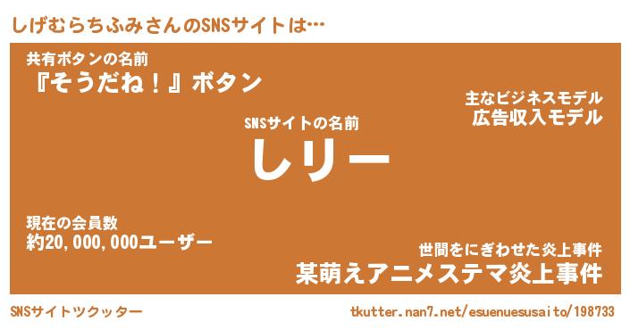 | 肩書あだ名 | 『しげむらちふみ社長令嬢』 |