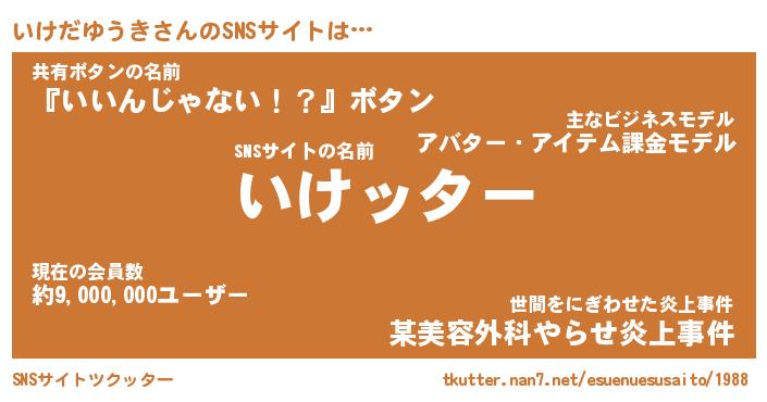 | ヘコむあだ名 | 『いけもー』『レバニラ』『いけっ子』 |