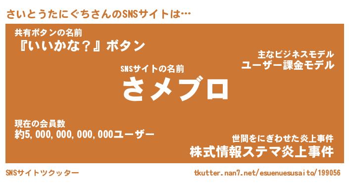 | 肩書あだ名 | 『さいとうたにぐち社長』 |