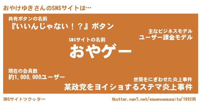 | 肩書あだ名 | 『おやけゆき御曹司』『おやけゆき大統領』 |