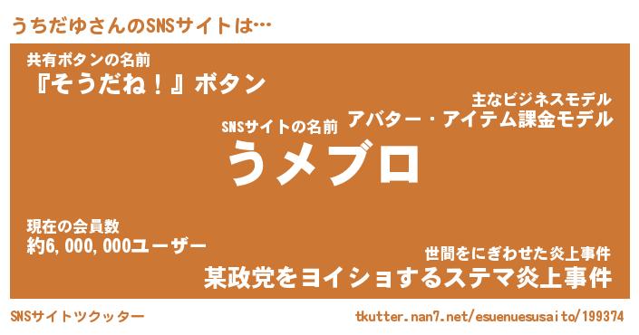 | 肩書あだ名 | 『うちだゆ社長』『うちだゆ総理大臣』 |