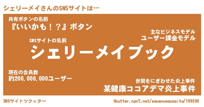 | 肩書あだ名 | 『シェリーメイ社長』『シェリーメイ班長』 |