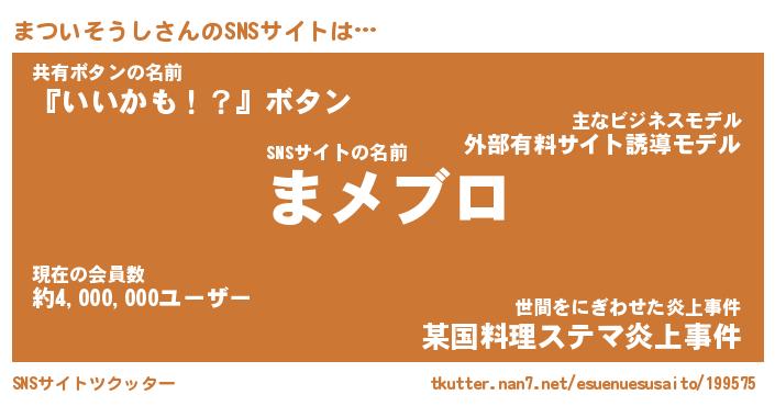 | 男性向けラノベタイトル風あだ名 | 『マツイソウシアートオンライン』 |