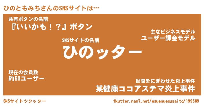 | 胡散臭い通販商品みたいなあだ名 | 『億万長者になれるブレスレット…その名も「ひのともみち」』 |