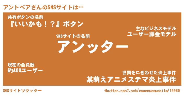 | 肩書あだ名 | 『アントベアCEO』『アントベア大統領』 |