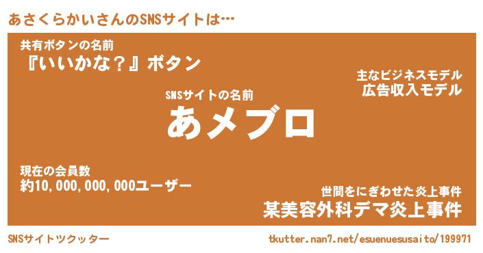 | 男性向けラノベタイトル風あだ名 | 『アサクラカイアートオンライン』 |