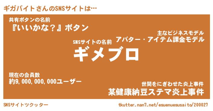 | ピコ太郎風あだ名 | 『ギコ六郎』『ピギ次郎』『ギガ四郎』 |