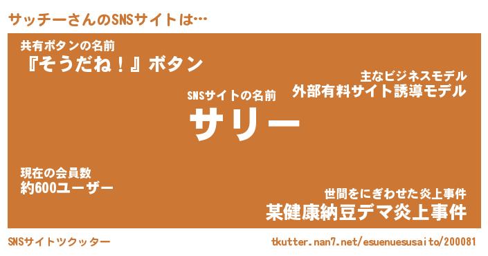 | 意味不明あだ名 | 『ペロリンサッチー』『永久保存サッチー』 |