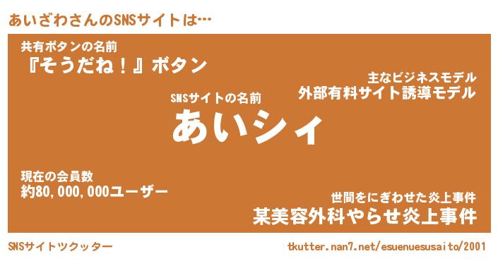 | 肩書あだ名 | 『あいざわ社長』『あいざわ国家主席』 |