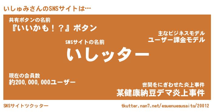 | 胡散臭い通販商品みたいなあだ名 | 『億万長者になれる霊験あらたかなお札…その名も「いしゅみ」』 |