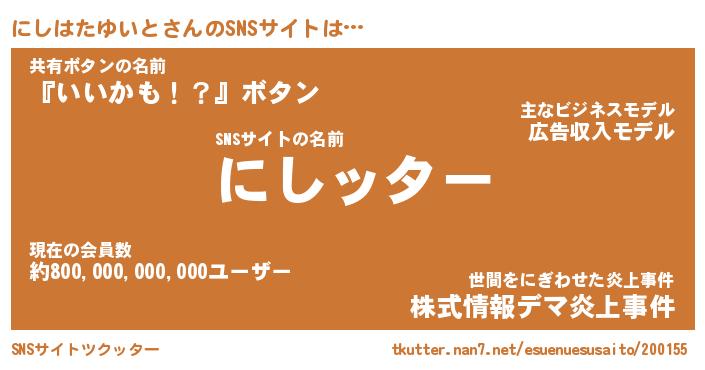 | 肩書あだ名 | 『にしはたゆいと社長』 |