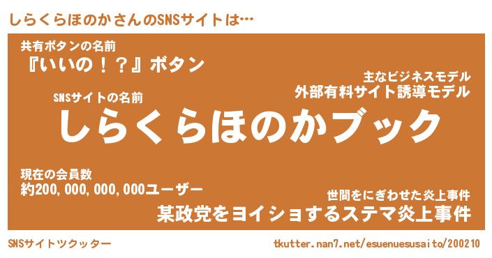 | 胡散臭い通販商品みたいなあだ名 | 『億万長者になれる水晶球…その名も「しらくらほのか」』 |