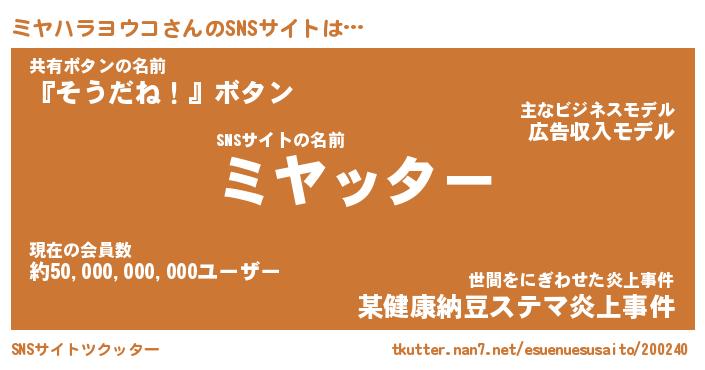 | 胡散臭い通販商品みたいなあだ名 | 『億万長者になれる霊験あらたかなお札…その名も「ミヤハラヨウコ」』 |