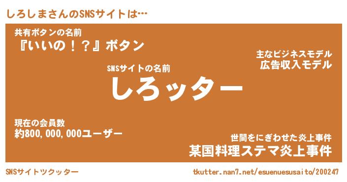 | 胡散臭い通販商品みたいなあだ名 | 『億万長者になれる水晶球…その名も「しろしま」』 |