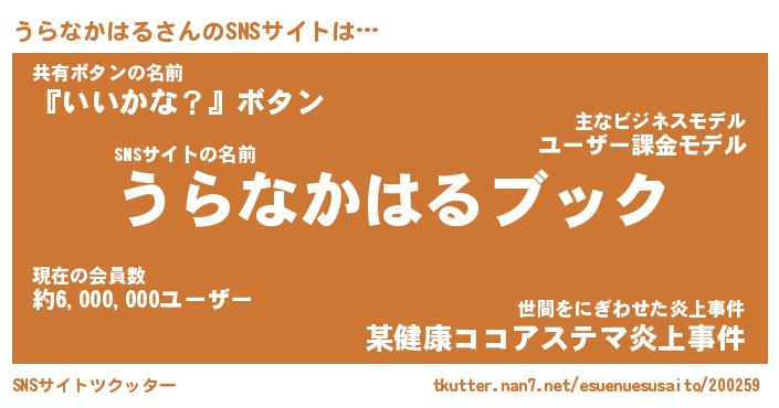 | ヘコむあだ名 | 『うらにー』『なまこ酢』『うらを』 |