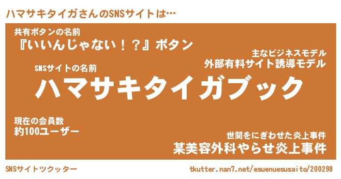 | 男性向けラノベタイトル風あだ名 | 『ハマサキタイガアートオンライン』 |