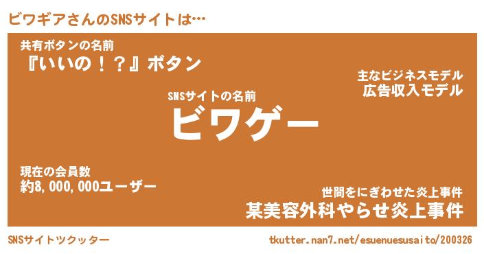 | 意味不明あだ名 | 『ペロリンビワギア』『永久保存ビワギア』 |