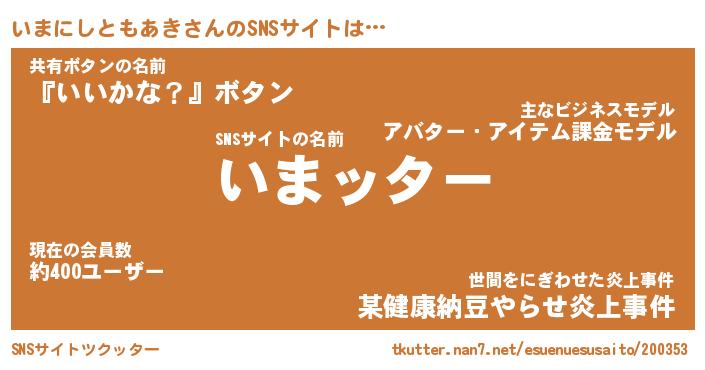| 胡散臭い通販商品みたいなあだ名 | 『億万長者になれる霊験あらたかなお札…その名も「いまにしともあき」』 |