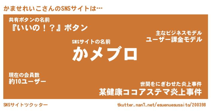 | 欧米人風あだ名 | 『マイケルかませれいこ』 |