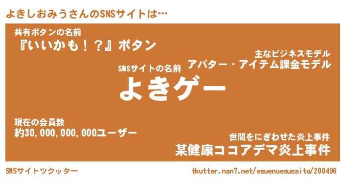 | 欧米人風あだ名 | 『マイケルよきしおみう』 |
