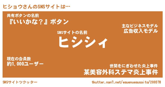 | ファンタジー風あだ名 | 『ヒシフェル』『エターナルヒショウー』 |