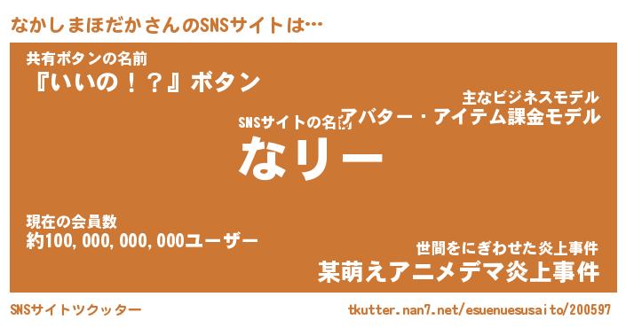 | 胡散臭い通販商品みたいなあだ名 | 『モテモテ間違いなし霊験あらたかなお札…その名も「なかしまほだか」』 |