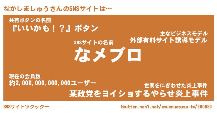 | 胡散臭い通販商品みたいなあだ名 | 『モテモテ間違いなし水晶球…その名も「なかしましゅう」』 |