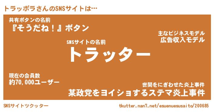 | 男性向けラノベタイトル風あだ名 | 『トラッポラアートオンライン』 |