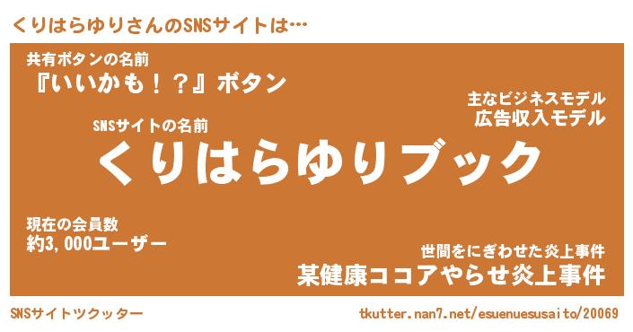 | 伝説のあだ名 | 『封印されしスナイパーくりはらゆり』 |