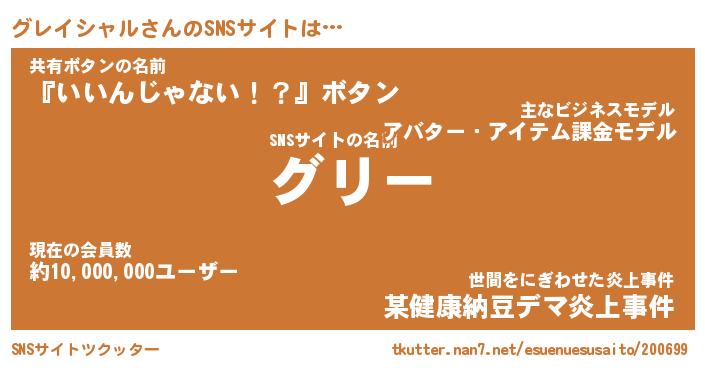 | 男性向けラノベタイトル風あだ名 | 『グレイシャルの憂鬱』 |