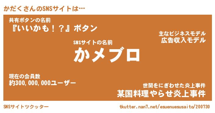 | ヘコむあだ名 | 『かだにー』『なまこ酢』『かだ太郎』 |