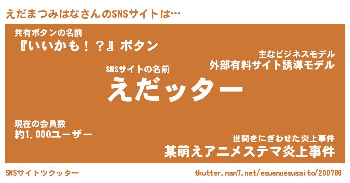 | 男性向けラノベタイトル風あだ名 | 『エダマツミハナアートオンライン』 |