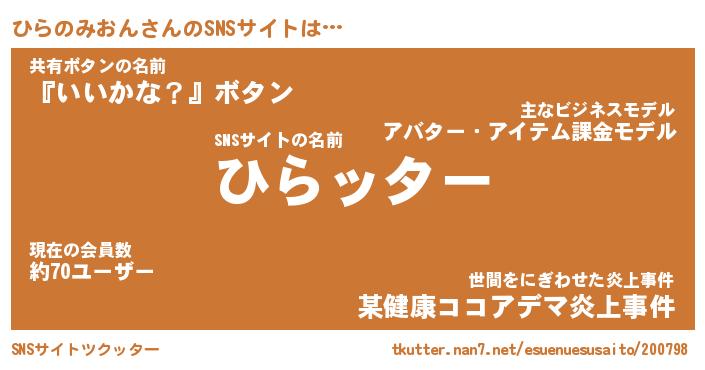 | ヘコむあだ名 | 『ひらもー』『なまこ酢』『ひらを』 |