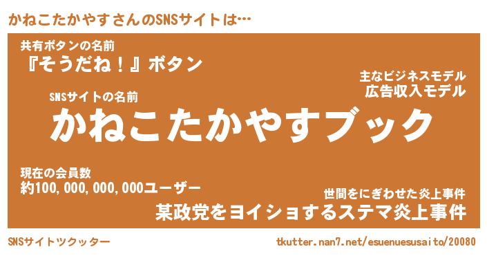 | 肩書あだ名 | 『かねこたかやす社長』 |