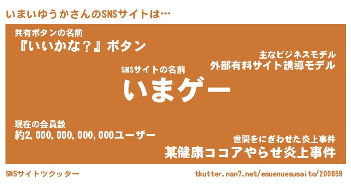 | ヒーロー風カッコイイあだ名 | 『スーパーイマイユウカ』『幻影騎士イマ』 |
